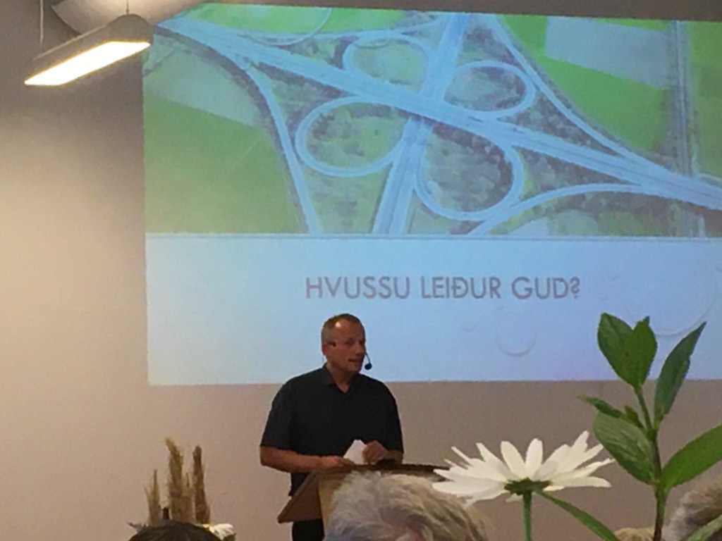 Today is Sunday and I look forward to going to the 11 a.m. service in the small, sod-roof church down by the Funningur harbor. Last night I was with Alis at a Christian Bible Conference, hosted at the denominational headquarters. The speaker talked about how God leads us–Hvussu lei∂ur Gud? Although I understood only 5% (maybe!), it was good to be with brothers & sisters in Christ. The most amazing thing to me is that God understands Faroese–a challenging language with roots in old Norse, what the Vikings spoke! I bought a children’s Bible storybook, hoping it will help me learn a little bit more of the language, especially when I have Alis record each of the stories and I can practice the pronunciation. At least, that’s the plan.